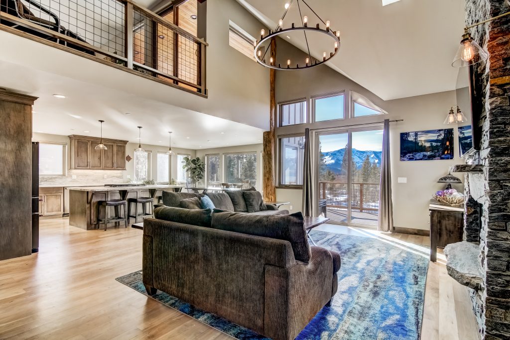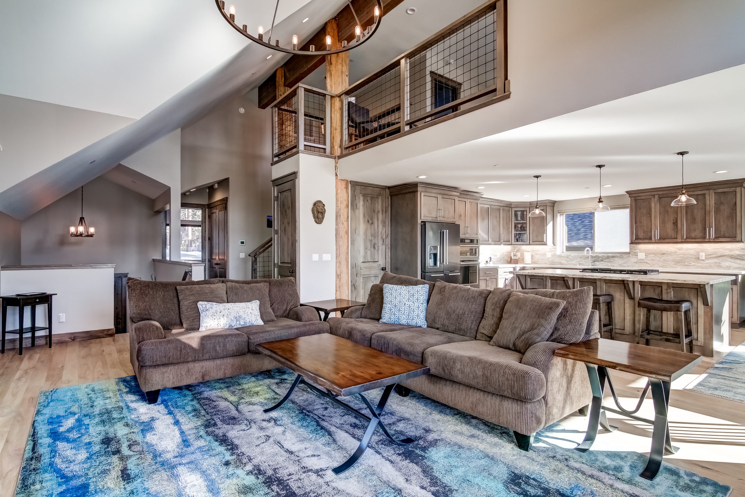 This brand new home is the ultimate Luxury getaway for two families that like to holiday together! Each family can have their own floor and but still be together. Each Floor has two bedrooms, a “kitchen”, and a living room with deck/patio looking at the Mountains and the Lake!