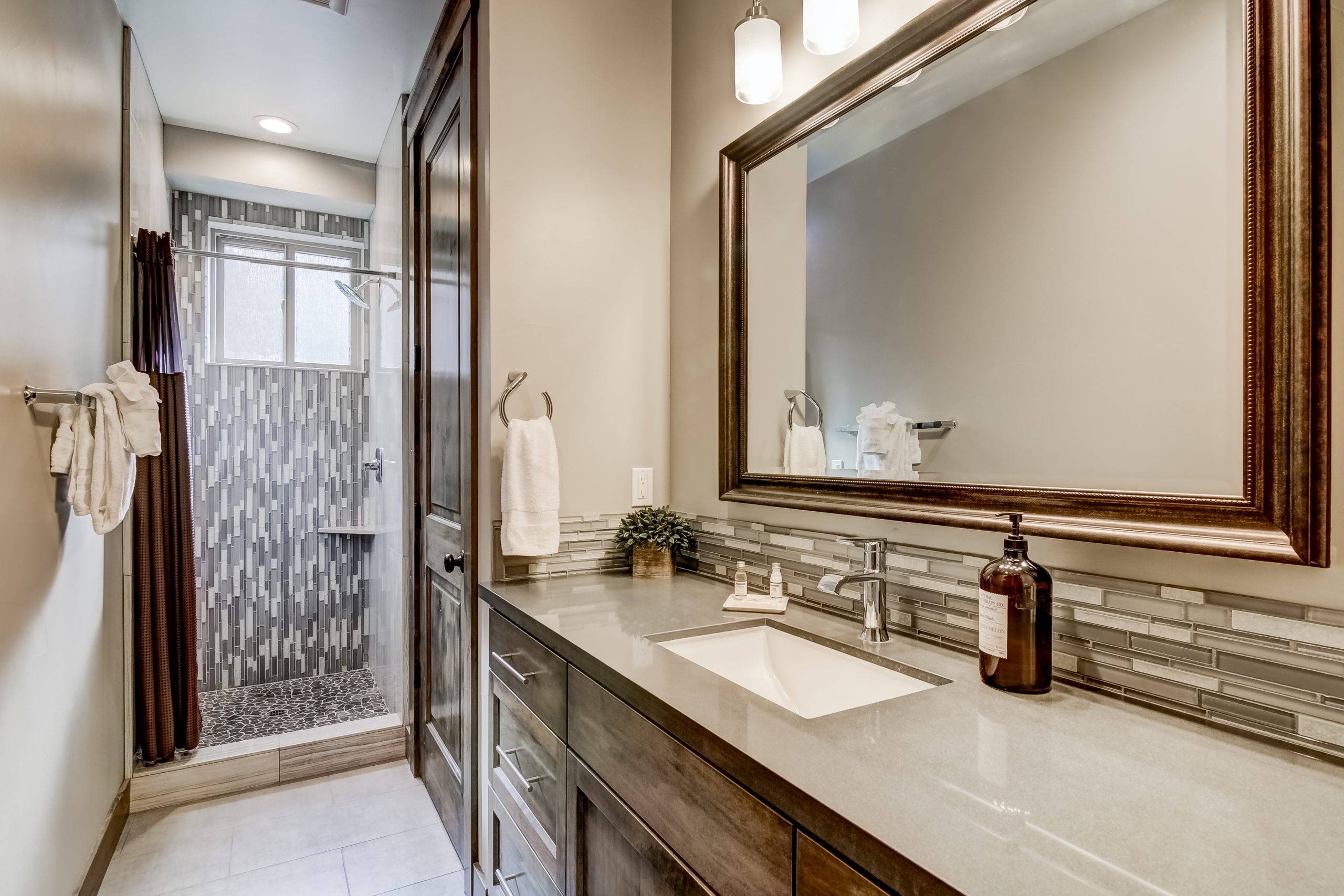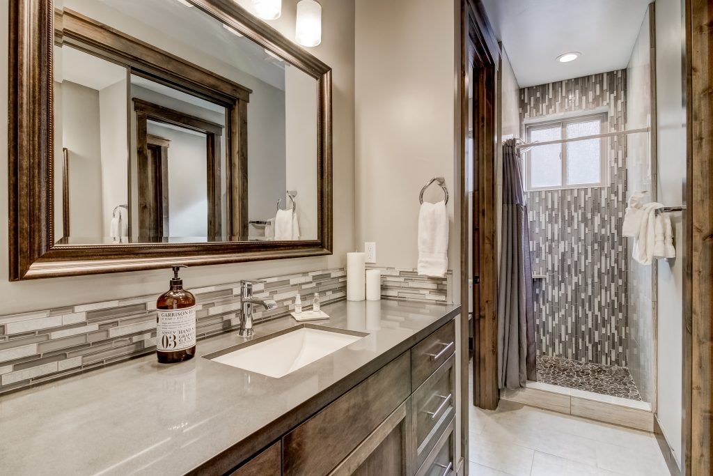 Vacation Home Style Bathrooms – There are two bathrooms that each have a large vanity and beautifully tiled shower. The bathrooms (showers and vanities) are separated by the water closet with one toilet.