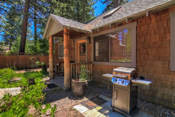 Rustic-chic Tahoe ski cabin with all modern amenities, Air conditioning, Central Heat and Wood Burning Fireplace, Full Kitchen, and Gas BBQ.