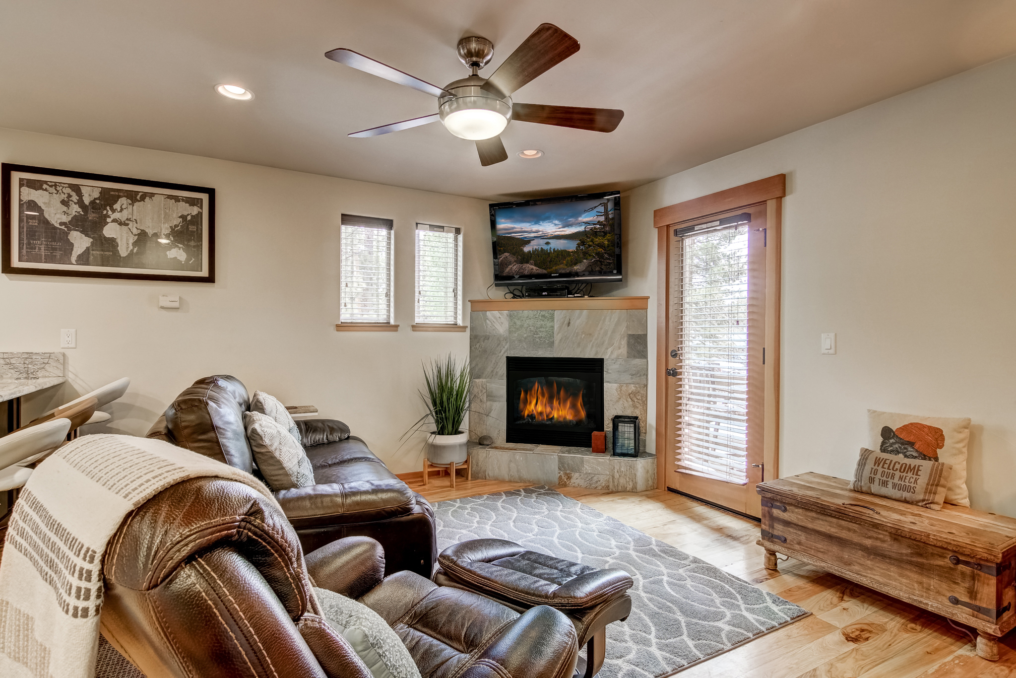 We built this Outdoor Enthusiasts’ Condo where you can walk to the Lake (Tahoe) & Beach – Wake up, smell the pine, go paddle boarding, or spend all day on the beach and then come home to your modern getaway and have a glass of wine on the deck.