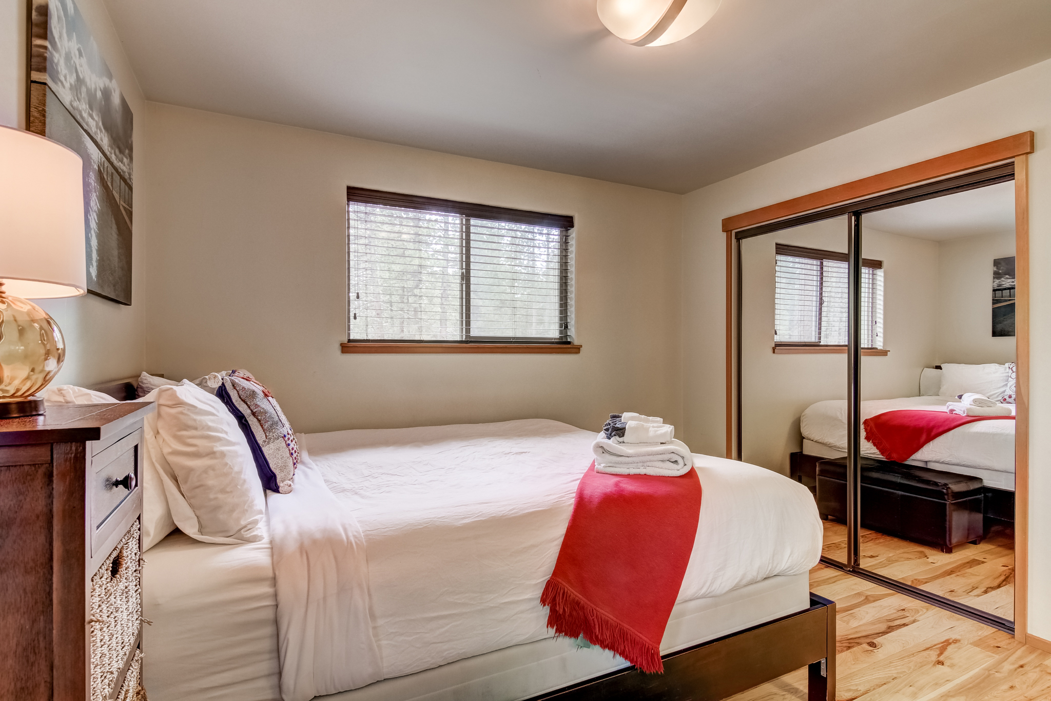 Nicely appointed bedroom, with a Cal-King bed and full bathroom. Bathroom has Tub/Shower.