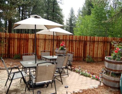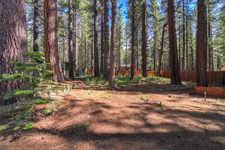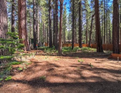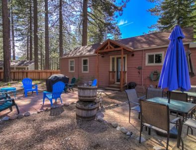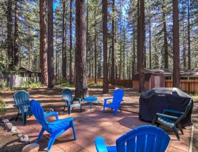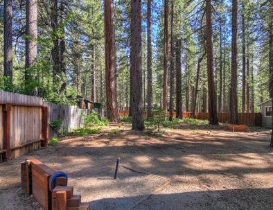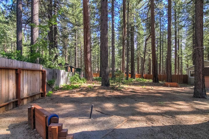 Backyard: Firepit, outside dining, BBQ, horseshoe pit and plenty of room to enjoy Tahoe’s summer weather.