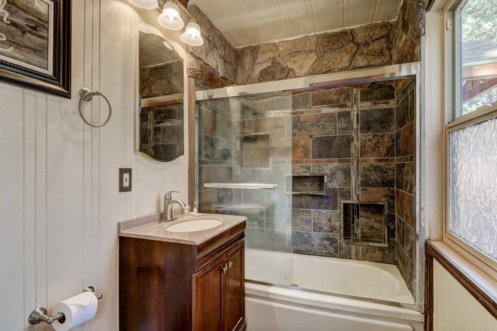 Cute Vacation home rental has all the modern amenities you & your family require but we did our best to retain that vintage-rustic “Tahoe” feel. 2 bdrm (1 master plus 1 “bunkhouse”), Large family backyard.